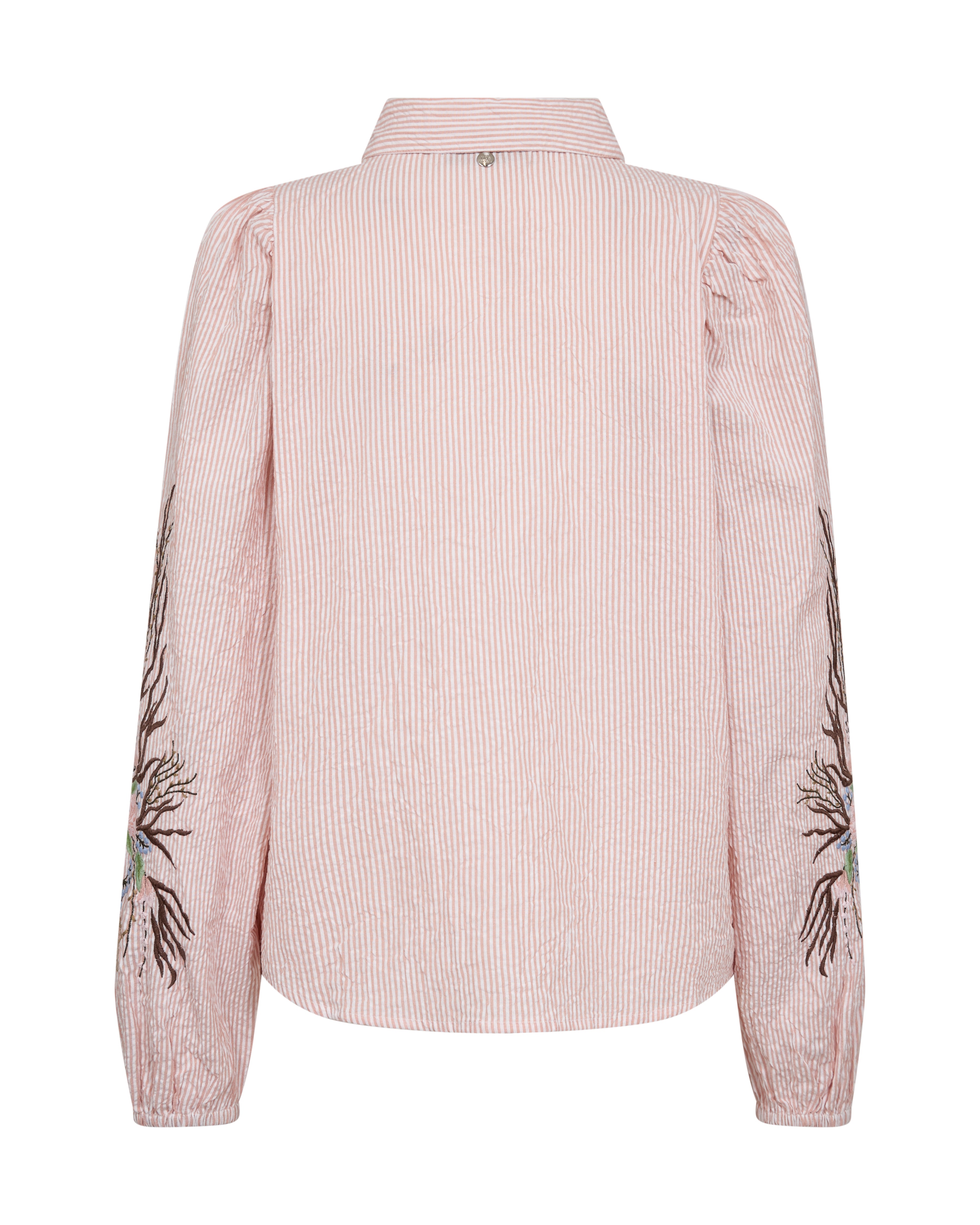 A classic cotton shirt with intricate embroidery on the sleeves for a feminine twist. Designed with a timeless silhouette, button front, and soft fabric that offers both structure and ease - perfect for dressing up or down.