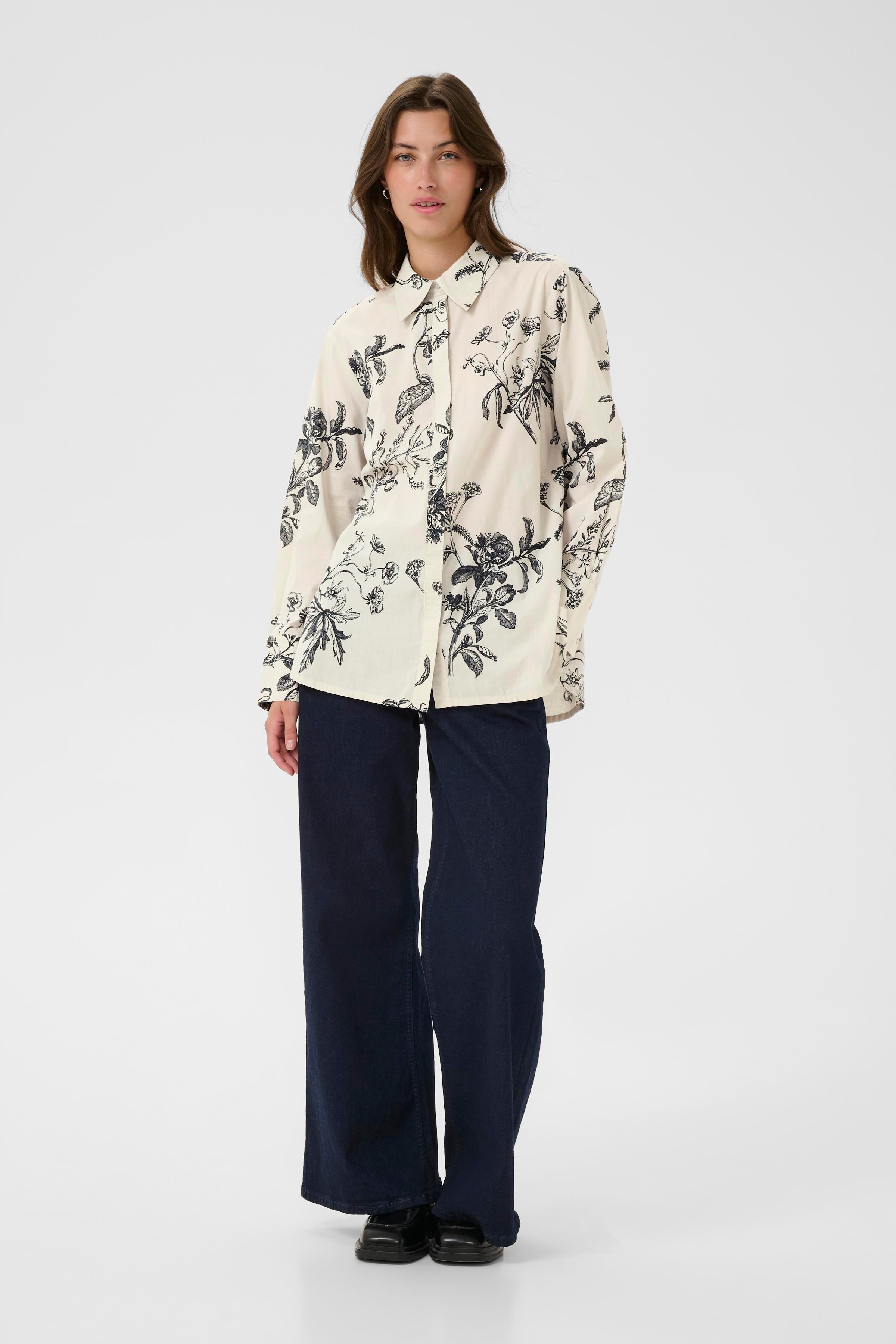 This shirt blends a classic silhouette with a modern floral print. Featuring a loose fit, hidden button closure and pointed collar, it offers a refined look. Style it with jeans or tailored trousers depending on the occasion. The model is 175 cm tall and wears a size 36.