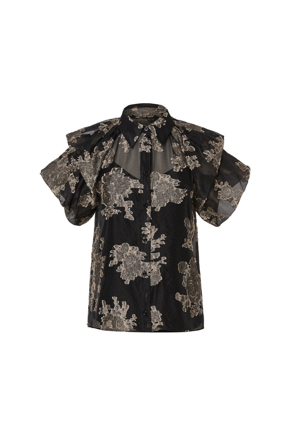 The Silver Bloom Blouse interprets the classic silhouette with a graphic and structural update. With short, double-layered tulip sleeves, this piece introduces controlled volume and a precise construction that discreetly stands out.